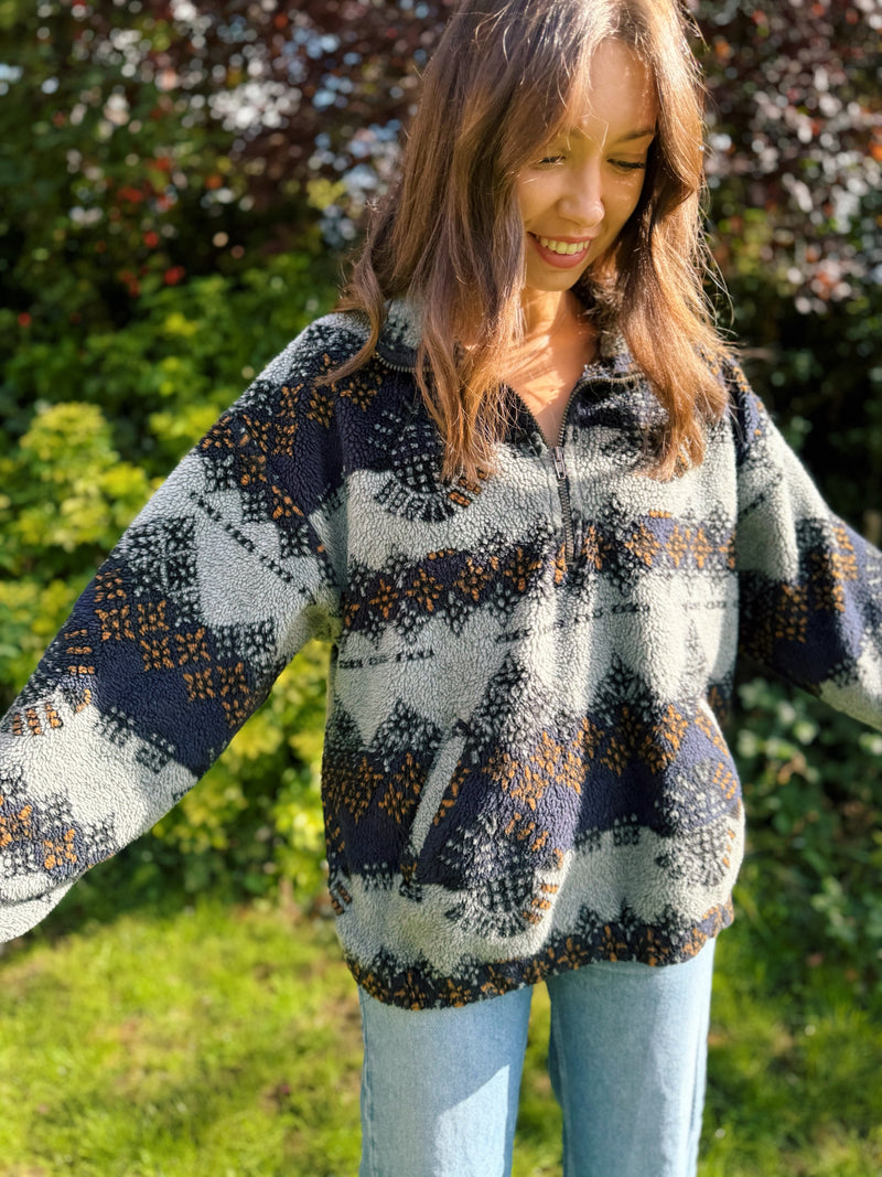 Vintage Aztec Pattern 1/4 Zip Fleece Jacket