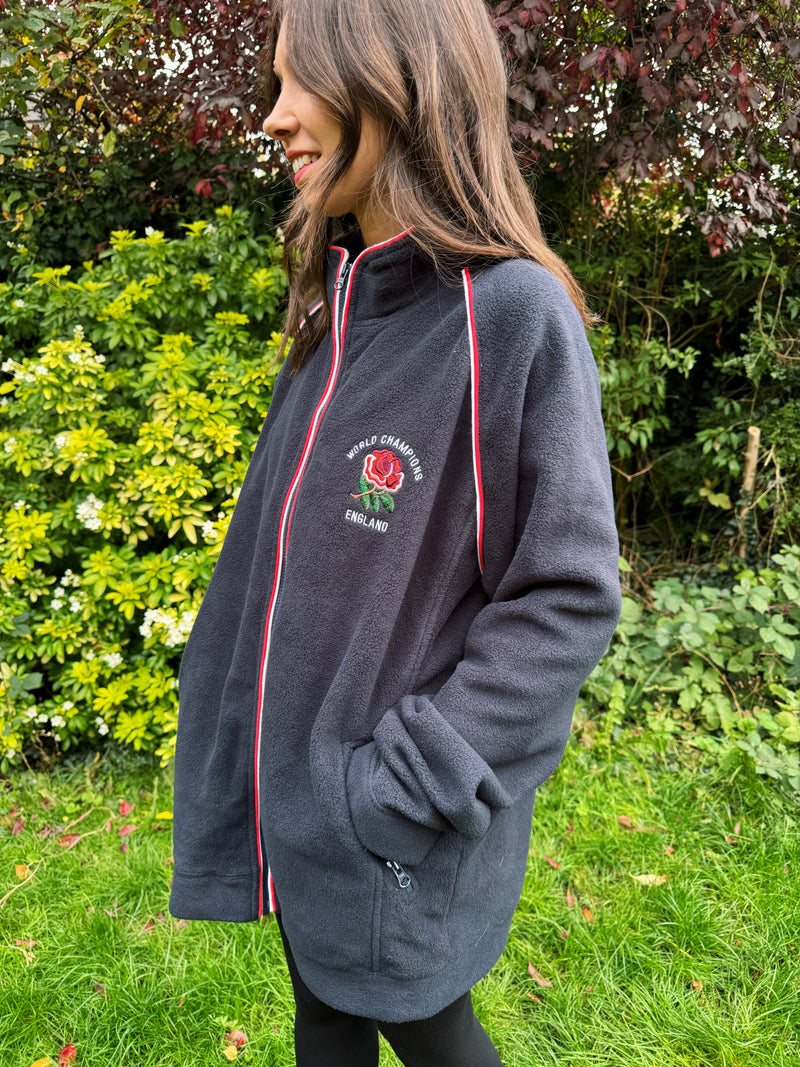 Vintage England Rugby World Champions Embroidered Zip Up Fleece