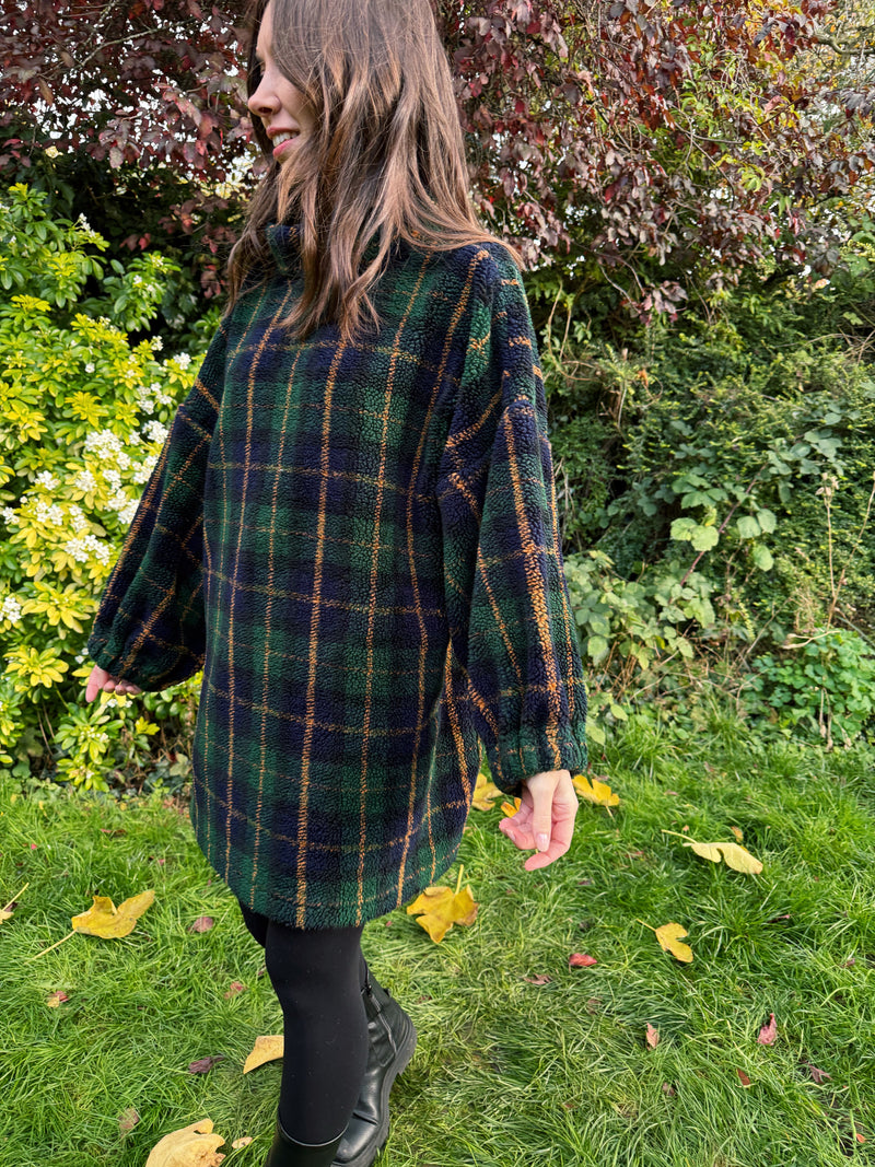 Vintage Green & Navy Oversized Tartan Teddy Fleece Pullover