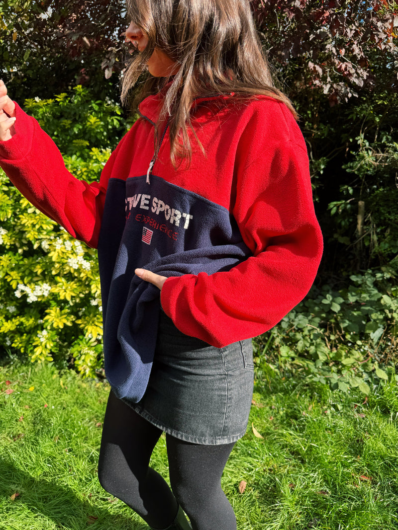 Vintage Red & Navy Active Sport 1/4 Zip Fleece Pullover