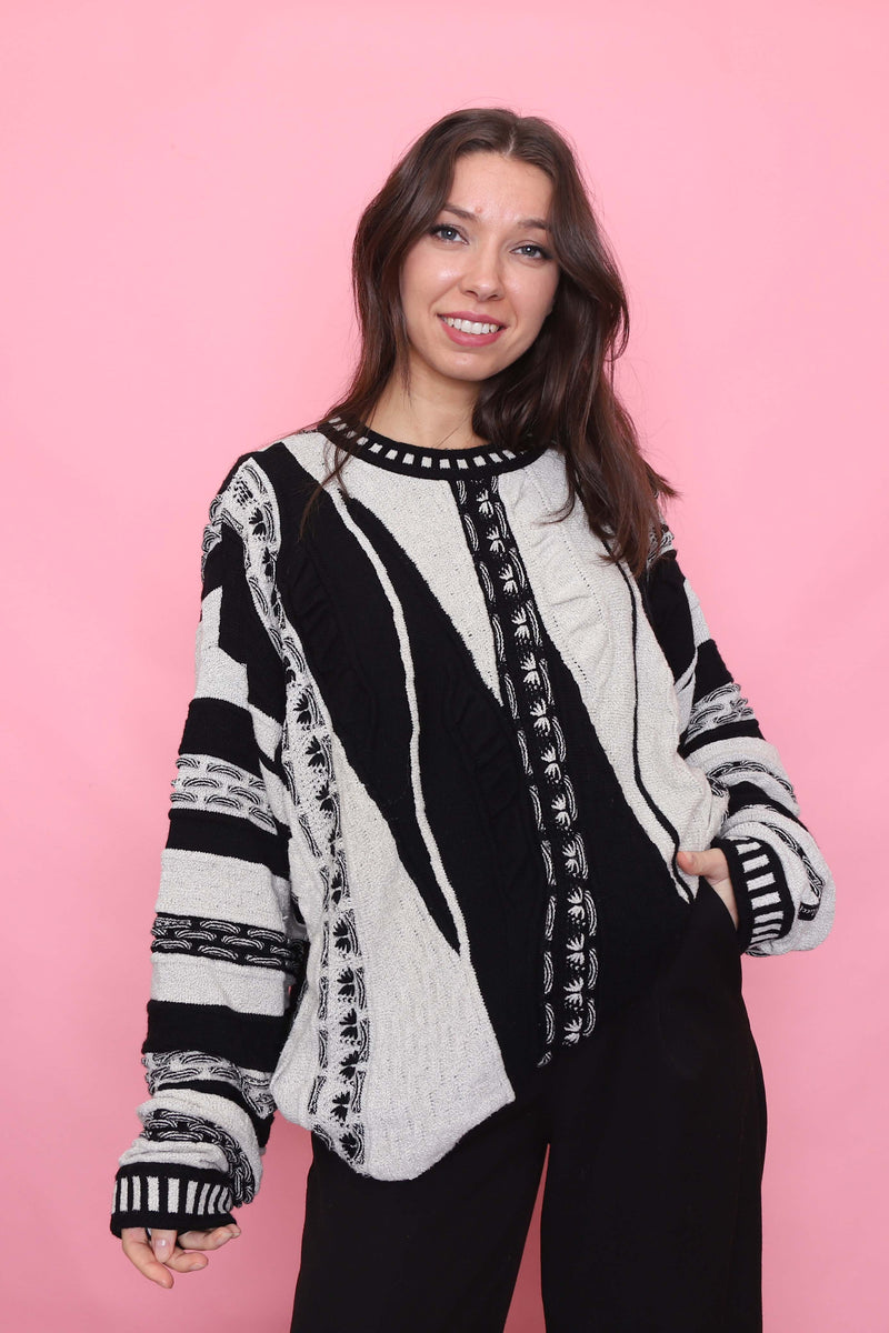 Carlo Colucci Vintage Abstract Monochrome Patterned Knit Jumper