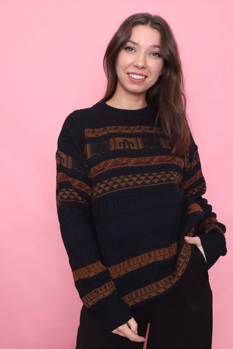 Vintage Navy & Burgundy Half-Zip 1/4 Zip Chenille Knit Jumper