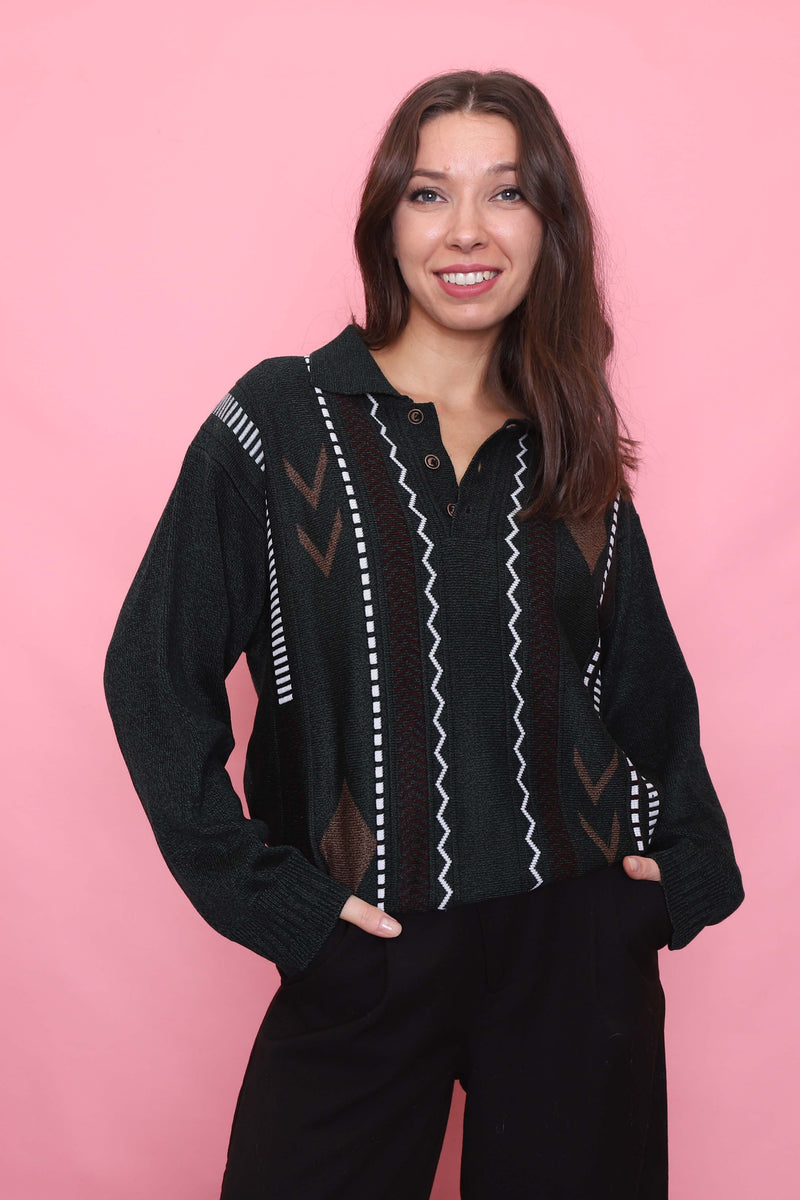 Vintage Graphic Patterned Zip-Up Knit Cardigan Jacket